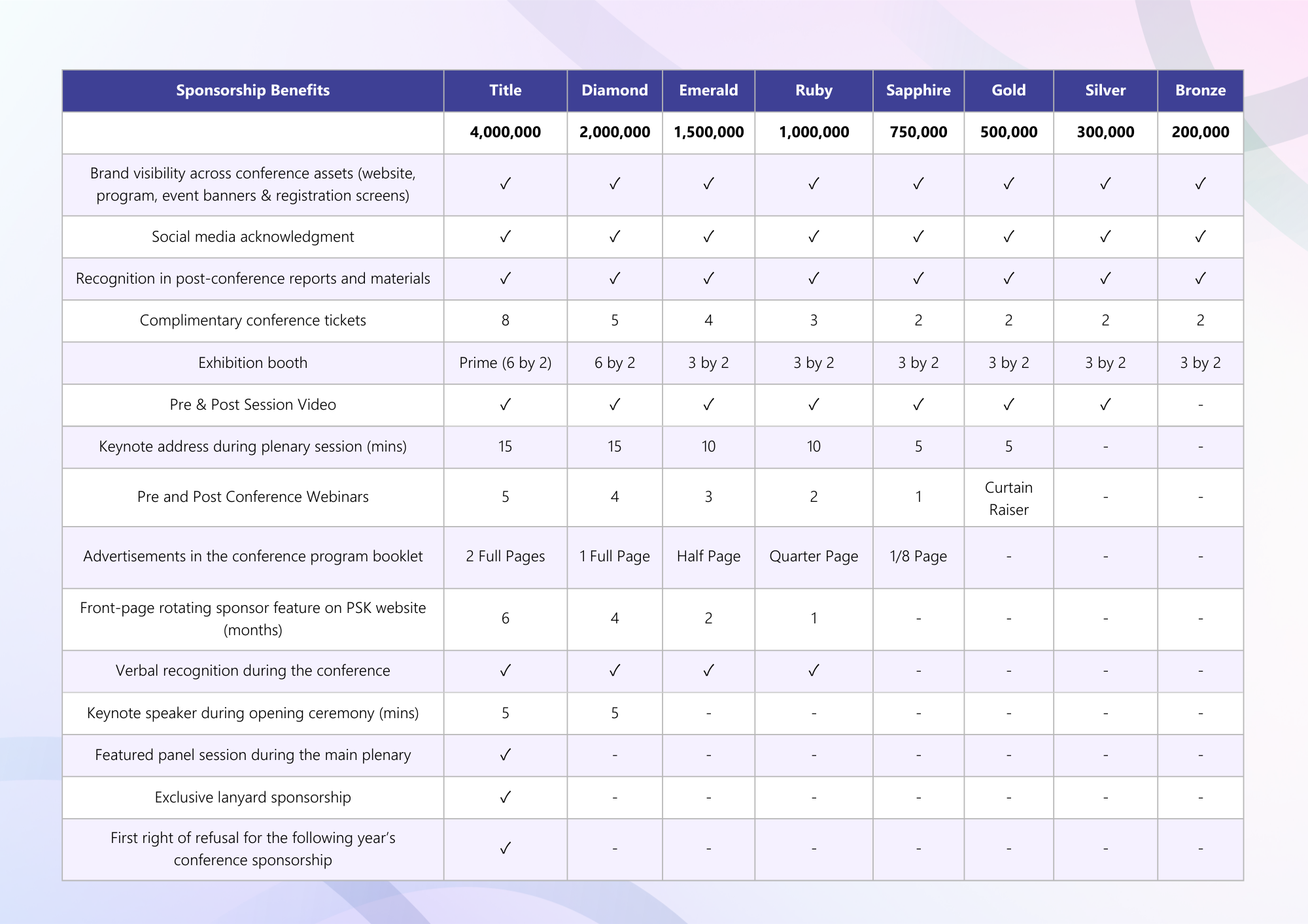 First right of refusal for the Sponsorship slot for the following year's conference